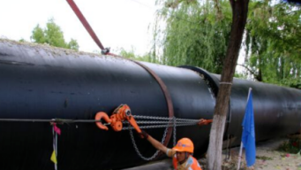 为了保证工程质量,在挖掘管沟时,首先要考虑回填时沙土是否能够填充到球墨铸铁管的底部部位,挖掘完成后,将手动葫芦悬挂在大型吊机的下部,再将铁管悬挂到手动葫芦上,通过调整手动葫芦的高度,来使铁管精准放入到管沟中,经过不断的调整,多截断的铁管便会整齐的排列在一起。